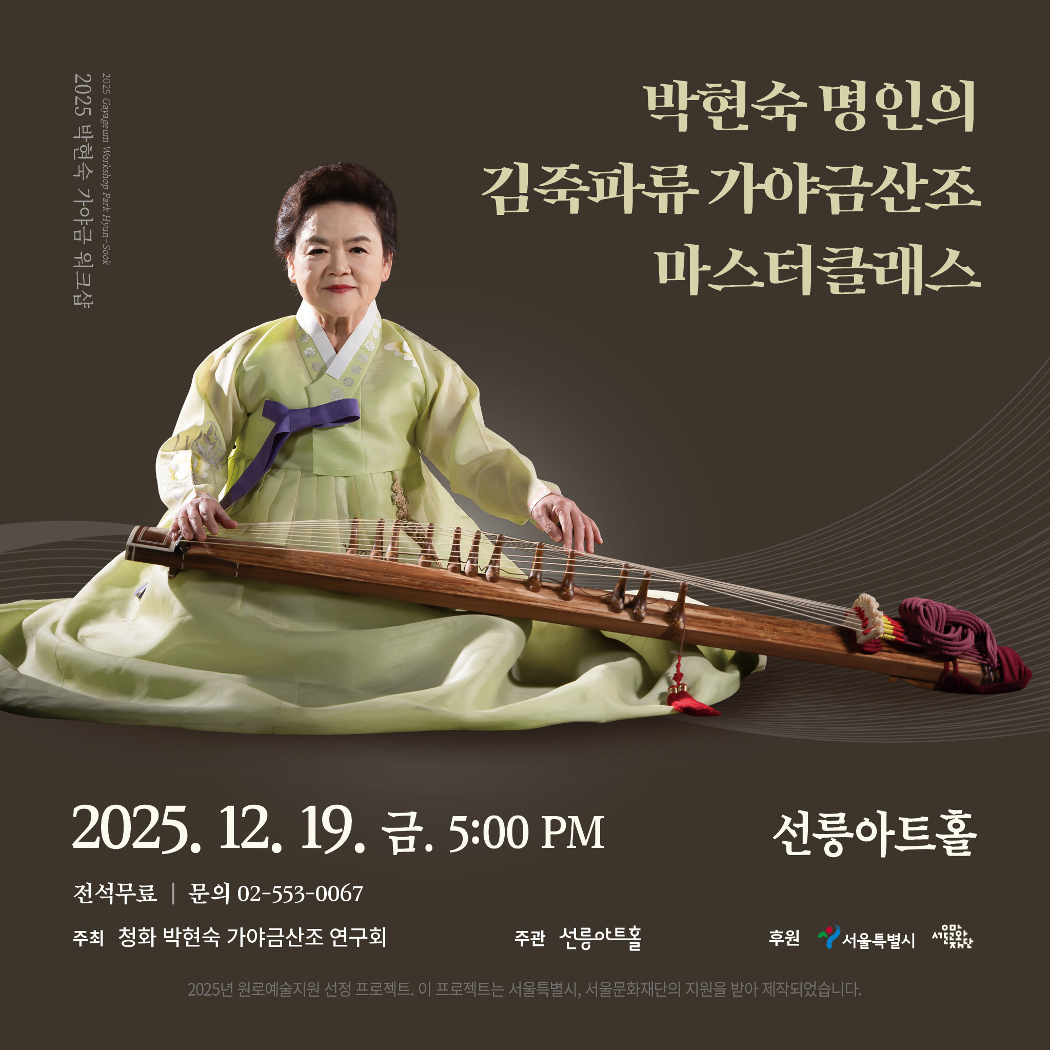 #박현숙 #가야금 #명인 #산조 #워크샵 #서울특별시 #서울문화재단 #원로예술지원