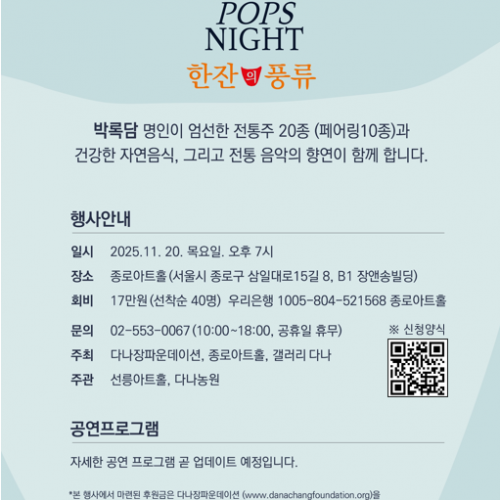 회비 : 17만원 (선착순 40명), 우리은행 1005-804-521568 (예금주 : 종로아트홀)