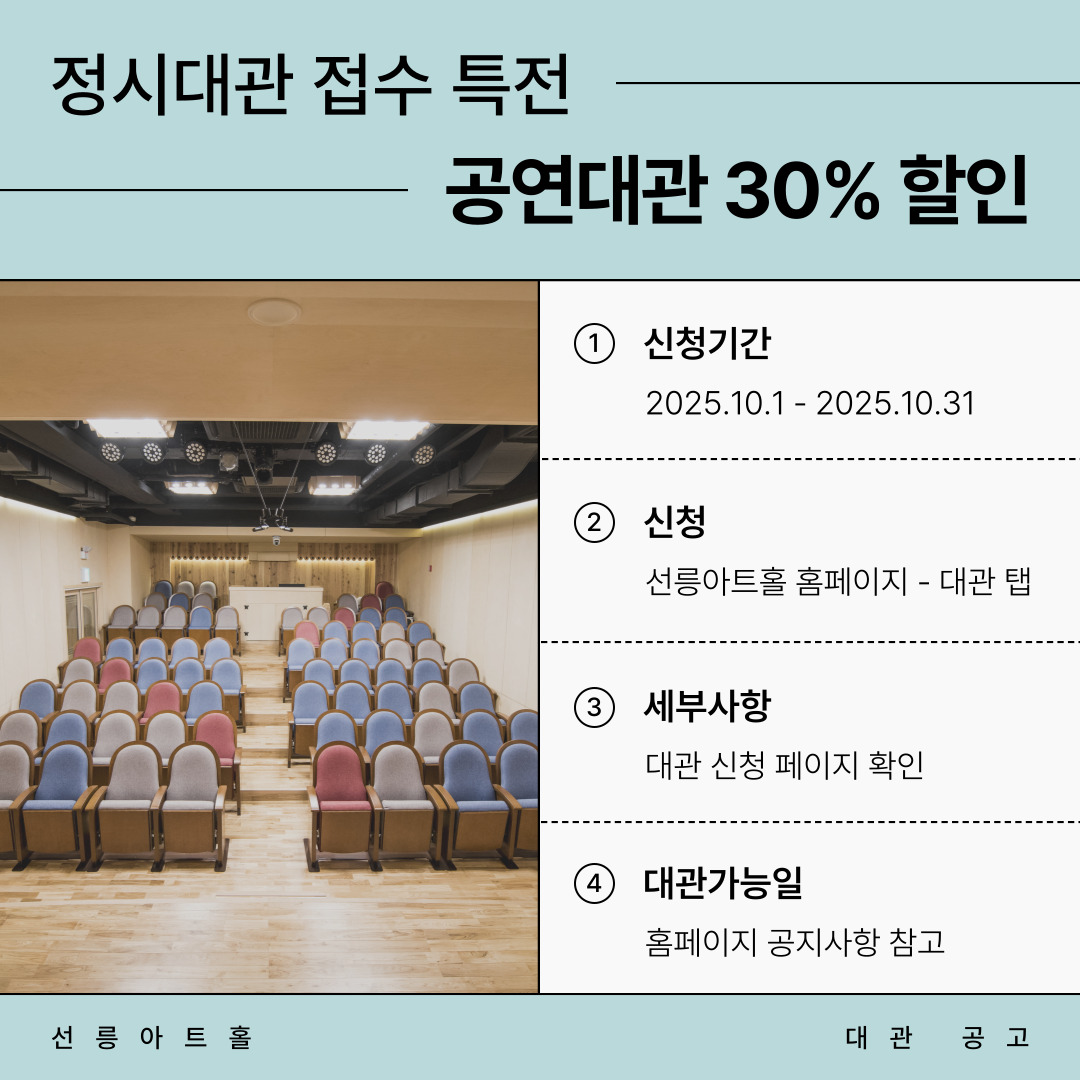 신청방법: 선릉아트홀 홈페이지 - 대관 탭