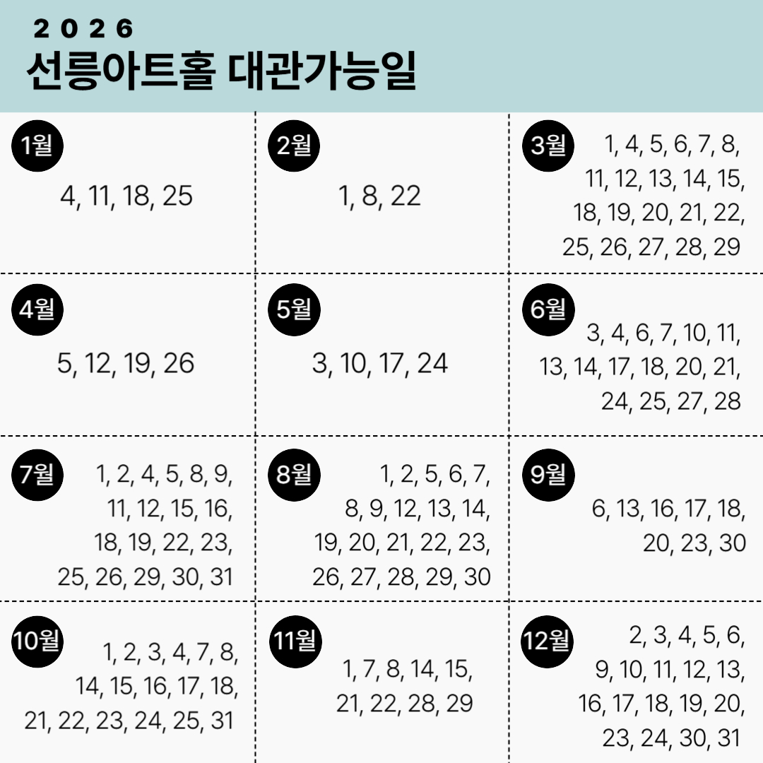 대관가능일: 2026 대관가능일 이미지 및 첨부파일 참고